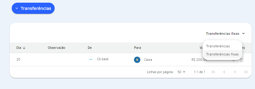 Então, marque a opção Transferência Fixa. Preencha as informações necessárias e salve.